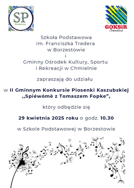 11. Karty zgłoszenia i Regulamin „Spiéwómë z Tomaszem Fopke” Gminnego Konkursu Piosenki Kaszubskiej dostępne są na stronach internetowych https://spborzestowo.edupage.org/